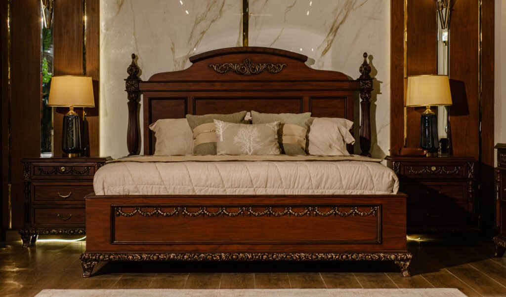Experience old-world grandeur with the Antique Victorian Bed by Gourmet Furnishers. Crafted with ornate carvings, rich wood tones, and a commanding silhouette, this bed captures the essence of vintage European luxury—perfect for those who appreciate heritage and refinement in their bedroom décor.