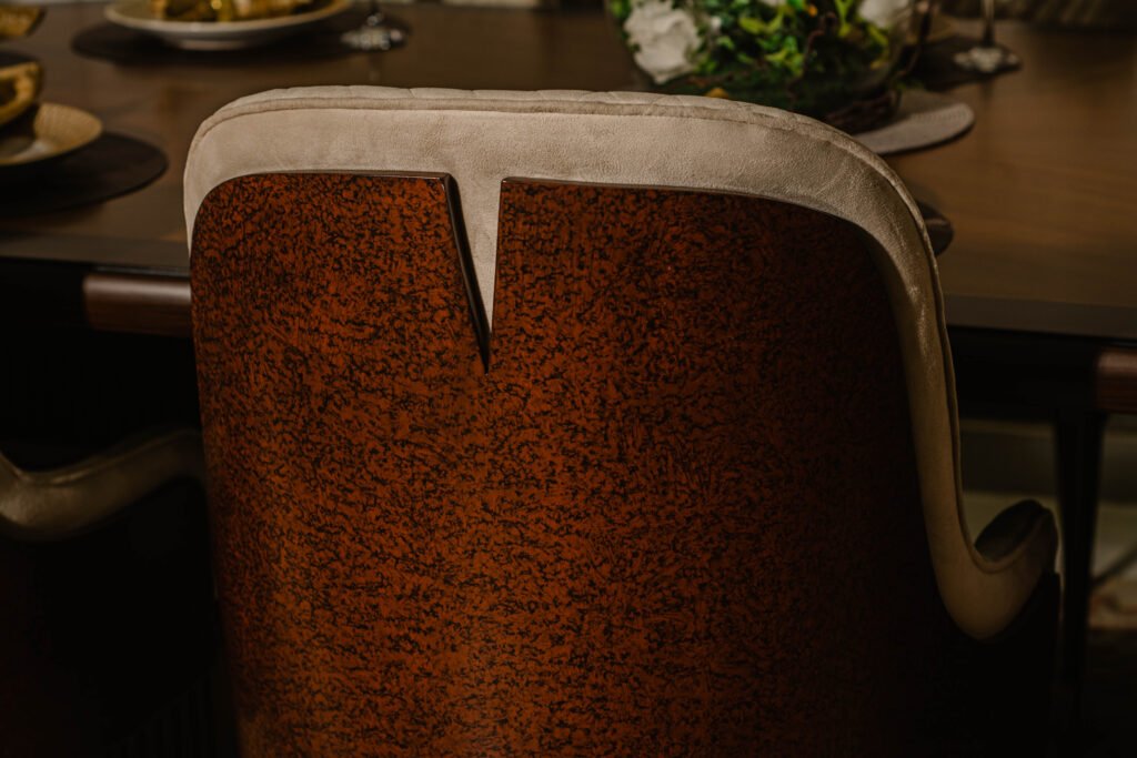 Redefine fine dining at home with the Burl Brass Dining Table in Pakistan and experience bold, refined design. A fusion of modern aesthetics and classic materials, this set features burl wood accents and brass detailing.