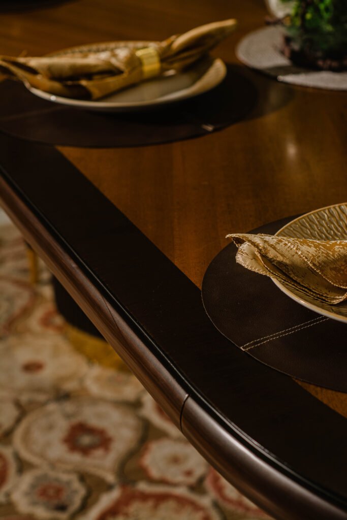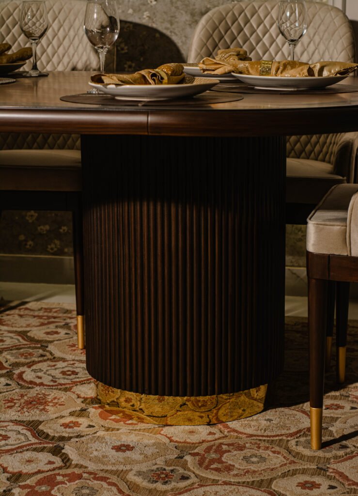 Burl Brass Dining Table – Luxurious Wooden Dining by Gourmet Furnishers in Pakistan