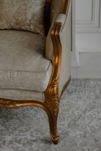 This sofa by Gourmet Furnishers is a bold statement of luxury and regal charm. Featuring a majestic silhouette, gold leaf accents, and plush upholstery, this sofa brings opulence and comfort into one timeless piece.