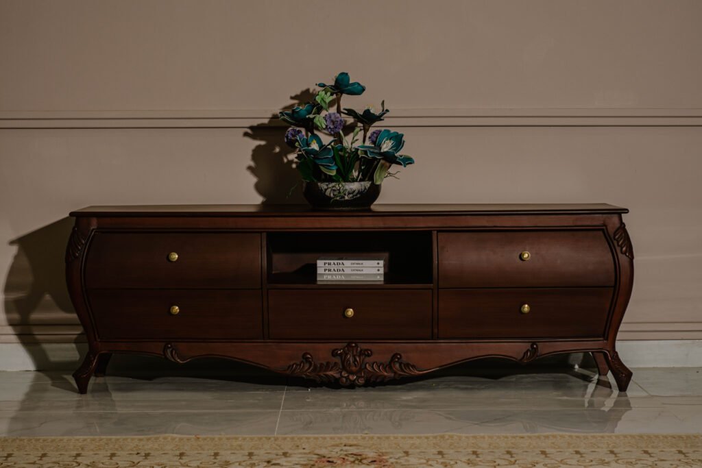 The Renaissance LCD Unit features intricate carved detailing, a rich wood finish, and a balanced layout designed to hold your television and media essentials in style. Blending antique inspiration with modern practicality, the Renaissance LCD Unit is more than just furniture, it’s a work of art that enhances both aesthetic and organization. Available in customized finishes to suit your décor. Shop now at Gourmet Furnishers, with nationwide delivery across Pakistan.