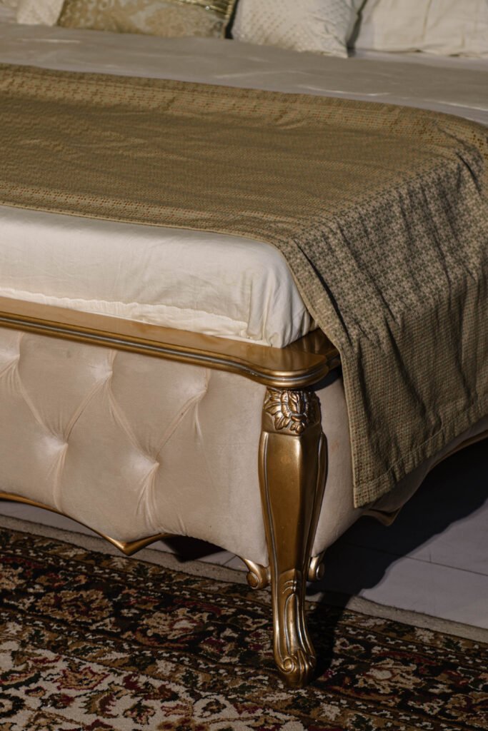 The Zinc Gold Bed features a commanding headboard accentuated with shimmering gold details and a sleek, contemporary silhouette. Whether you’re designing a high end master suite or an upscale guest room, the Zinc Gold Bed + Side Tables set delivers unmatched elegance and modern drama. Fully customizable in size, fabric, and finish, and available exclusively at Gourmet Furnishers with nationwide delivery across Pakistan.