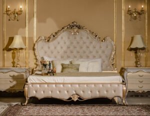 The Zinc Gold Bed features a commanding headboard accentuated with shimmering gold details and a sleek, contemporary silhouette. Whether you’re designing a high end master suite or an upscale guest room, the Zinc Gold Bed + Side Tables set delivers unmatched elegance and modern drama. Fully customizable in size, fabric, and finish, and available exclusively at Gourmet Furnishers with nationwide delivery across Pakistan.